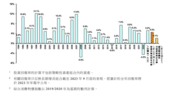 香港外匯基金投資回報率(1994年-2023年) 不過,這一份未經審計的成績單,在香港歷年外匯基金收益率還排不上號,畢竟只有4.5%,但放在去年其實挺不容易,況且如果沒有港股的拖累,整體收益率還會更高一些。因此香金管局總裁余偉文說,“在這複雜多變的環境下,外匯基金年內的投資表現亦經歷了一些起伏,但整體取得良好的回報。” 先看看賺錢的板塊:債券投資收益1440億港元;其他股票投資收益732億港元;其他投資收益115億港元。 根據余偉文對外匯基金2023年錶現的評價,亮點有二:其一是,“外匯基金債券組合的收益金額更是歷年最高,主要因為債券收益率處於高位,外匯基金持有的債券獲取可觀的利息收入”,其二,“全球股市於2023年大致向上,帶動股票組合表現不俗”。 再看虧錢的板塊,有兩項:香港股票投資虧損155億港元;非港元資產外匯估值下調5億港元。 按照香港金管局2021年底公佈的數據,外匯基金將其投資的72%分配給債券,12.3%分配給離岸股票,6.6%分配給存款,5.1%分配給海外房地產和其他私募股權投資,4%分配給香港股票。 就是這大致占組合4%左右的港股,貢獻了155億的虧損。 有香港立法會議員呼籲外匯基金買入港股以支撐市場,遭到金管局副總裁李達志的拒絕。他表示,“外匯基金的目的是維持港元穩定,而購買香港股票并不能達到這個目標。”而余偉文也是直截了當地表示:“由於地緣政治緊張局勢以及降息時機,市場充滿不確定性”, “外匯基金的目的是捍衛貨幣和金融穩定。我們必須投資海外資產,并注重長期投資。” 美元債券結算的高息,加上海外股市表現,共同推動香港外匯基金在2023年賺了一大筆。 縱觀全球股市2023年的表現,主流叙事都離不開大型科技公司。為什麼主權財富基金都對大型科技股青睞有加?據華爾街見聞分析,除了被動的資產配置,大概能總結成以下幾點原因:資產質量,持續賺錢的能力;流動性,隨時變現的能力;科技與未來,代表最先進生產力的發展方向;管理成本低,不用看那麼多股票。 這個時代所有的主流叙事,都離不開這些大型科技公司,或者說就是被這些公司聯手推動的,從移動互聯網到雲計算,從web3再到大模型,甚至就連中國企業卷出海,受益的依然是Google、Meta。 像Meta剛公佈了史上最強財報,四季度營收401億美元,同比增25%,淨利潤140億美元,同比暴漲3倍。營收很大一部分是SheIn、Temu貢獻的,淨利的暴增則離不開裁員。 所以高業績+分紅+大規模回購,即使扎克伯克減持,股價仍然能一天漲20%,單日市值漲了2000億美元,相當於漲了一個阿里巴巴還多。這反映了資金和情緒的共識對股價的作影響,也許比什麼公司內在價值要大得多。 但“黑天鵝”仍然不會絕跡,2000年互聯網泡沫在一片鼎沸中破滅,次貸危機也發生的悄無聲息。現在看來,事態好像又在朝著集體決策的另一面逐漸演進。 瑞銀的數據顯示,美股大型科技股的平均市盈率水平已經達到了28倍,遠高於小盤科技股17倍的水平。美銀客戶流報告顯示,機構投資者正在加速撤離美股,規模為2008年金融危機以後的第二大。(完) (本文內容僅供參考,不構成投資建議) 【編輯:錢林霞】