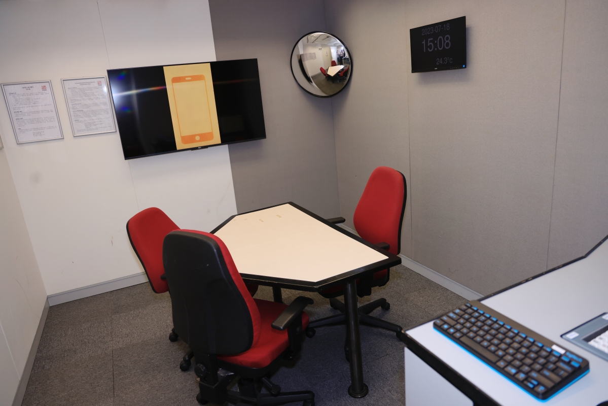 香港廉政公署錄影會面室。香港中通社圖片 胡英明在接受中通社專訪時強調,50年來廉署不斷“行前幾步”,例如在上個世紀90年代初,廉署已經在香港率先引入錄影會面的偵訊模式,令調查過程更公平公正,其後亦設立法證會計小組,專門處理錯綜複雜的財務調查案件。 (完) 【編輯:陳偉根】