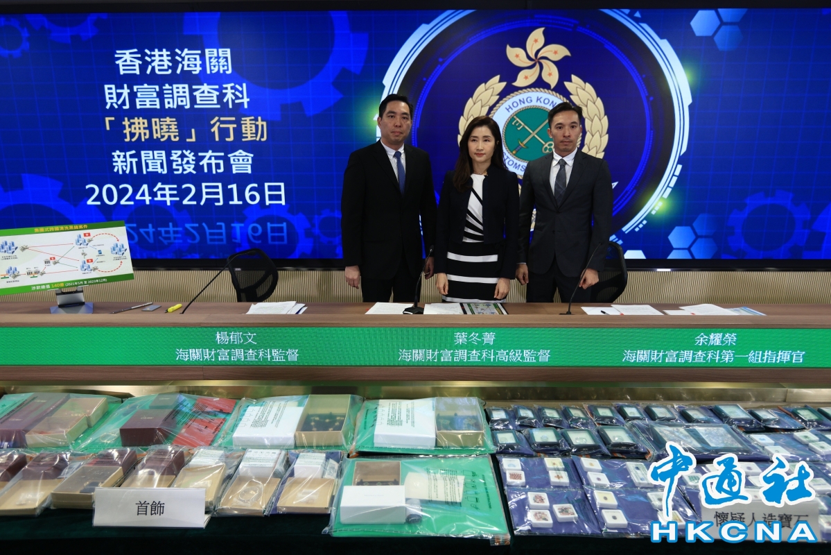 香港新聞網2月16日電 香港海關今日(16日)上午舉行記者會,發佈偵破歷來最大宗涉款約140億港幣的洗黑錢案件的詳情。