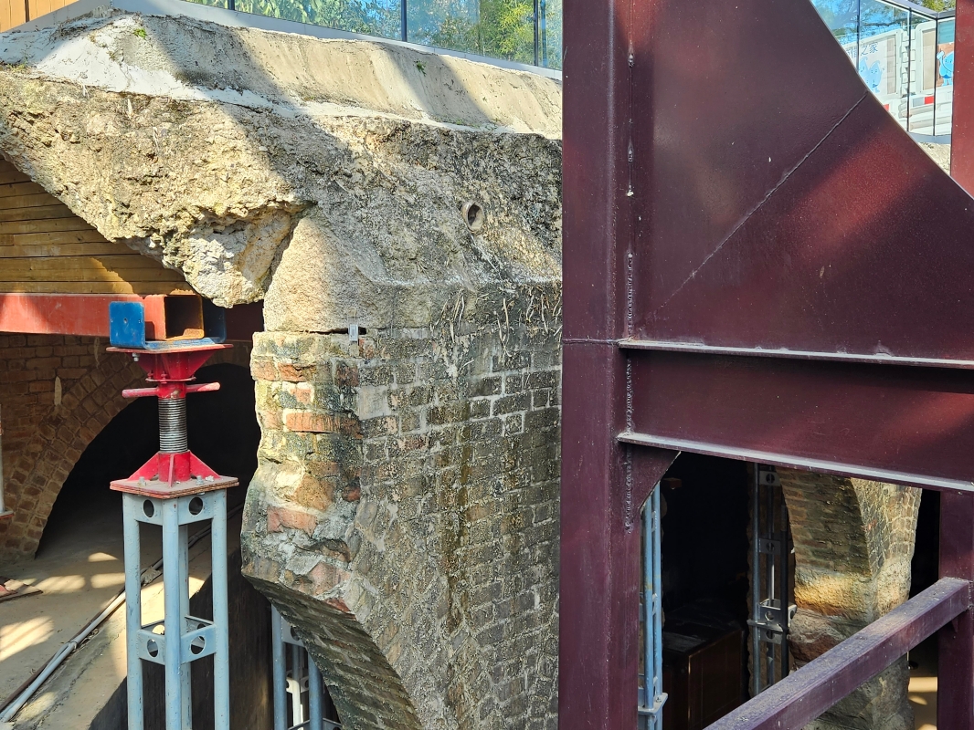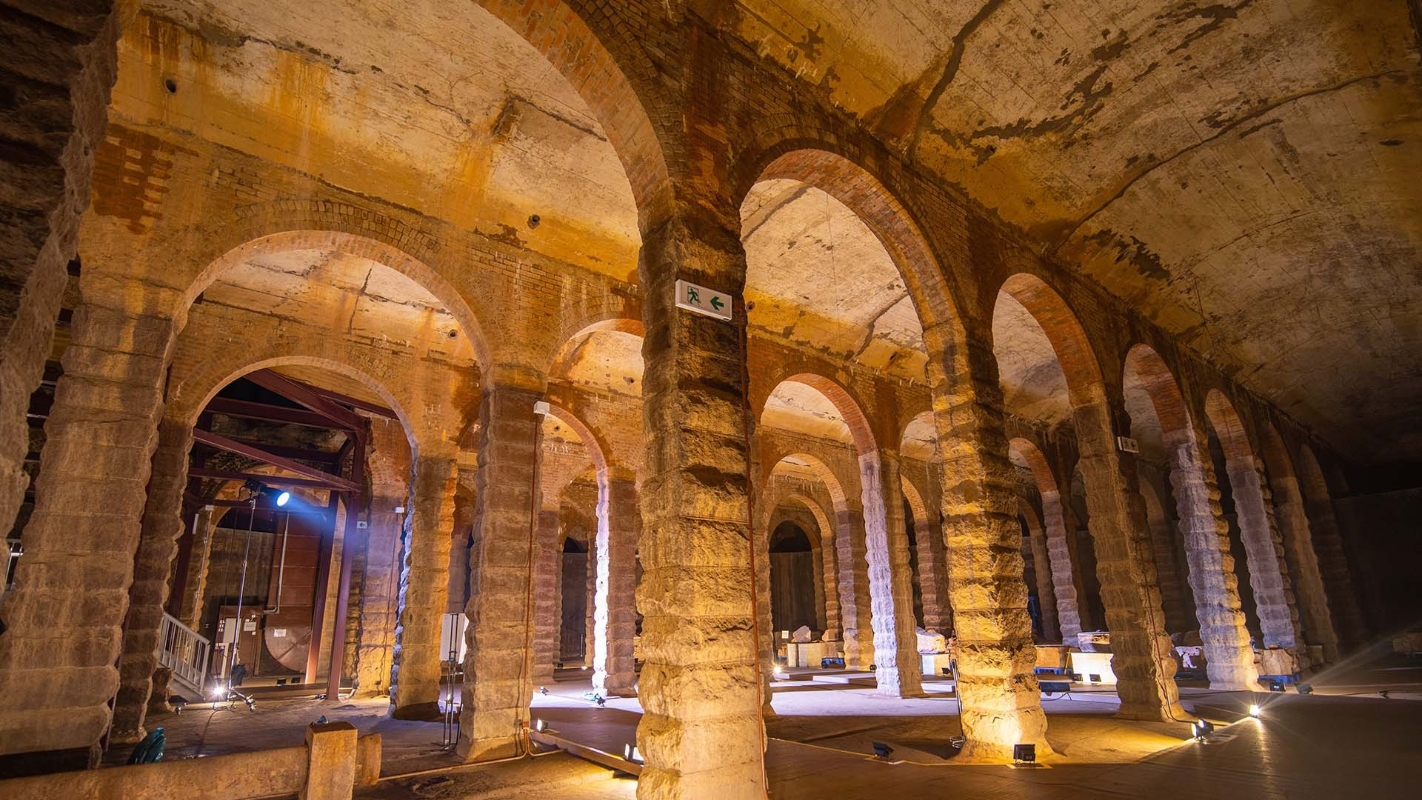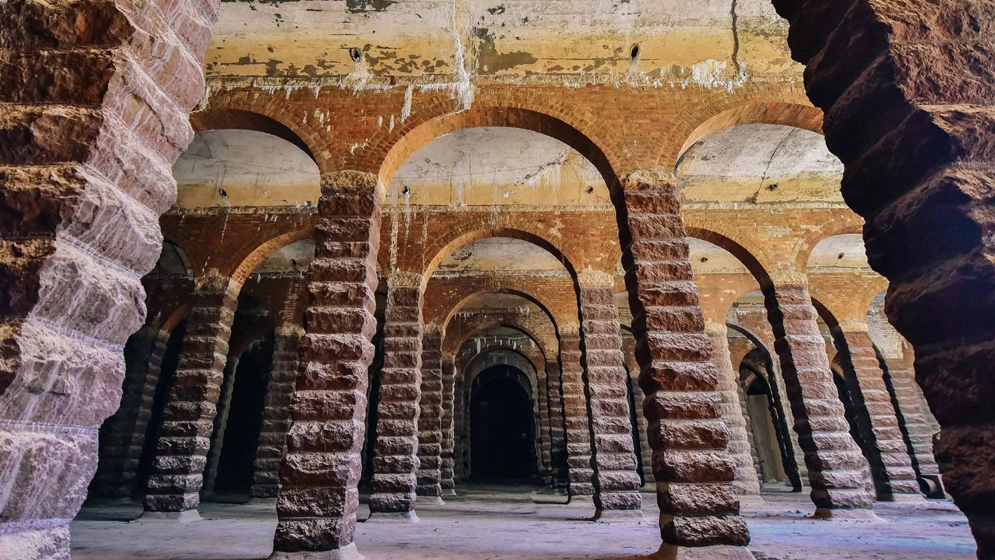 身處配水庫,眼前是壯麗的大型拱頂,排列整齊的仿羅馬式立柱。