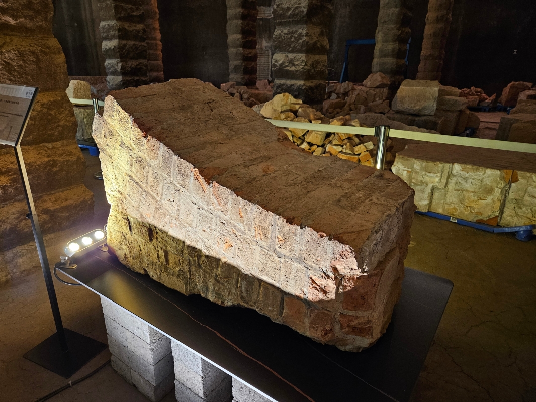 現場設有特別景點,展出配水庫所使用的磚石。(香港中通社記者 黃璇攝)