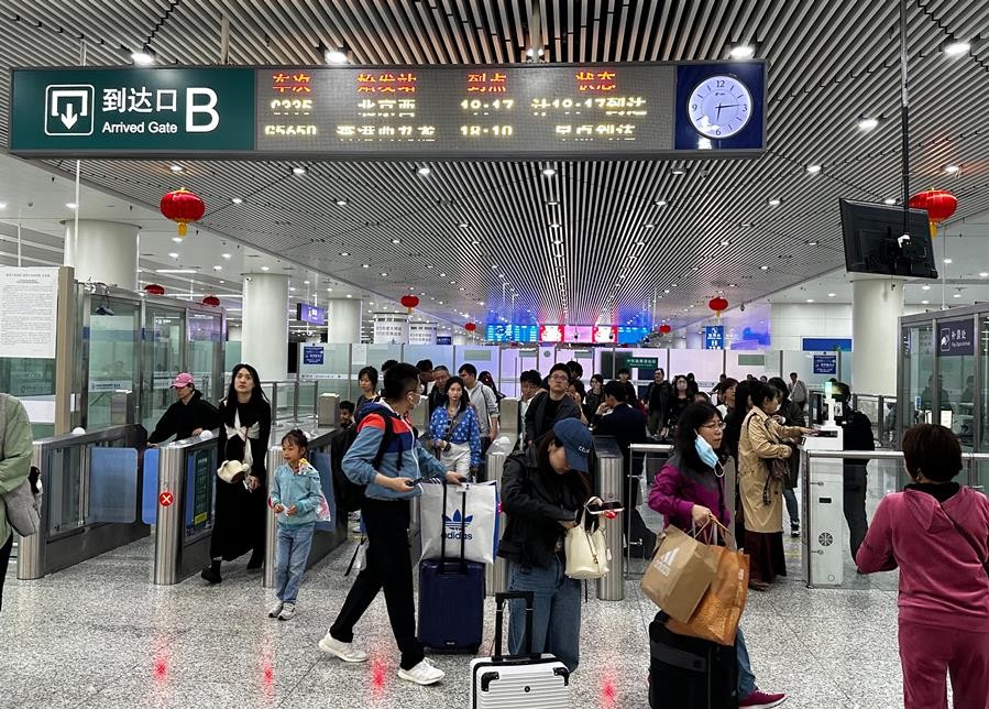 圖為深圳福田站。(香港中通社記者 曹文毓 攝) 具體來看,鐵路客運量預計累計9959萬人次;公路人員流動量預計累計21.84億人次,其中高速公路及普通國省道非營業性小客車人員出行量預計累計19.98億人次,公路營業性客運量預計累計1.86億人次;水路客運量預計累計940萬人次;民航客運量預計累計1804萬人次。 17日,2024年綜合運輸春運工作專班也發布了16日(春運第22天,農曆正月初七)的出行數據,全社會跨區域人員流動量約30846萬人次,比2023年同期增長34%。其中,鐵路客運量1528.8萬人次,比2023年同期增長25.1%;公路人員流動量(包括高速公路及普通國省道非營業性小客車人員出行量、公路營業性客運量)28961萬人次,比2023年同期增長34.4%;水路客運量121.6萬人次,比2023年同期增長32.5%;民航客運量234.9萬人次,比2023年同期增長42.2%。(完) 【編輯:丘志彬】
