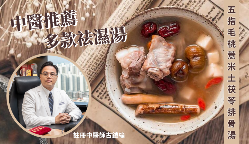 註冊中醫師古鎧綸推薦多款祛濕食療方。(香港新聞網製圖) 【清補涼】 材料:淮山(去硫璜)24克、薏苡仁24克、芡實24克、蓮子24克、枸杞子24克、龍眼肉24克、玉竹21克、北沙參21克、百合24克、豬腱(自備) 做法: 1. 將所有材料洗淨後用清水浸泡,豬腱汆水備用。 2. 將所有材料放入煲內,加入適量清水。 3. 用武火煮沸後加入豬腱轉文火再煮2小時,熄火後加入適量鹽調味即可。 功效:補益肺腎、益氣滋陰。淮山、薏苡仁、茨實、蓮子具有健脾滲濕的功效,而龍眼肉及百合可以有助養心潤肺。 【五指毛桃薏米土茯苓排骨湯】 材料:五指毛桃20克、薏苡仁10克、土茯苓10克、排骨250克 做法: 1. 將所有材料清洗乾淨,浸泡30分鐘。排骨斬成小塊,氽水備用。 2. 將所有材料和排骨放入煲內,加入適量清水。 3. 武火加熱至沸,轉文火煲1.5小時,加入食鹽調味即可飲用。 功效:健脾益氣,清熱除濕。五指毛桃、薏苡仁、土茯苓都用健脾益氣化濕的功效,同時土茯苓還可以清熱解毒。 【陳皮茯苓茶】 材料:陳皮1片、茯苓5克、紅棗2顆、枸杞少5顆 做法: 1. 將所有材料清洗乾淨,無需浸泡。 2. 將全部材料一起放入養生壺燉煮15分鐘或者開水冲泡所有材料20分鐘,即可飲用。 功效:健脾益氣,除濕化痰。陳皮、茯苓可以健脾燥濕,還有紅棗、枸杞可以养血安神。 【木棉花糖水】 材料:木棉花10克、冰糖適量 做法: 1. 將所有材料清洗乾淨,無需浸泡。 2. 將全部材料一起放入武火加熱至沸,加入冰糖轉文火煲5分鐘,即可飲用。 功效:清熱祛濕。適合3嵗以上兒童服用。