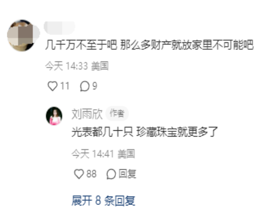 圖片源自劉雨欣的小紅書 有網友好奇這些東西到底值不值上千萬。對此,劉雨欣表示都是一些珠寶收藏品,所以價值頗高。