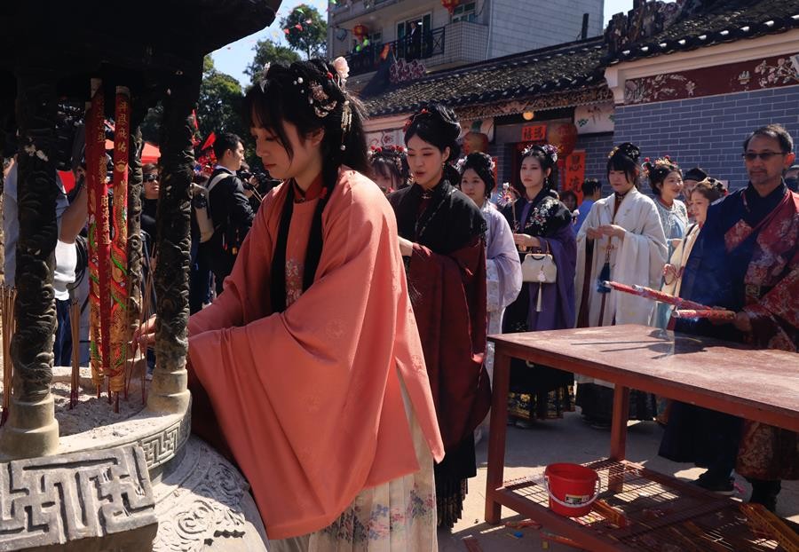 資料圖:2月12日,第二屆“香港許願節漢服日”在大埔林村舉辦,以衣冠之姿,傳揚參拜祈福、拋寶牒許願等具香港本地特色的中國道家民俗。 香港中通社圖片 馬來西亞星洲網日前報道,今年春節期間,中國江蘇蘇州推出穿傳統服飾出行的“福利”,此舉引發不少網民發文支持,指“增添節日氛圍感”“成為城市特有風景線”“穿出了傳統文化”。據蘇州軌道交通消息,為弘揚中華傳統文化,營造溫馨歡樂的過年氛圍,9日(除夕)至17日(初八),穿著全套傳統漢服或中國少數民族服飾的乘客,可向車站工作人員提出免費進站需求。 美國有線電視新聞網12日也報道了今年春節,“以絲綢和園林而聞名”的蘇州舉辦了穿中國傳統服飾免費乘地鐵活動。報道指,該活動並非心血來潮。近年來,穿傳統服飾游覽景點已成為中國人體現節日氣氛的一種潮流,在年輕人當中尤其流行。很多人都在社交媒體上曬出自己穿漢服出游的照片。報道還提到,今年春節前後,上海豫園會舉辦為期40天的燈會,“那裡已成為漢服愛好者的熱門打卡地”。在海南省海口市著名的騎樓老街,當地居民說,也有越來越多的年輕遊客穿上傳統服飾慶祝春節。 印尼《國際日報》22日報道,今年春節期間,中國陝西有3000多年歷史的古都西安又掀起了一場傳統漢服熱潮。自龍年新年伊始,西安的景區和街道上就出現了許多穿著漢服者的身影,為這座歷史文化名城帶來了濃濃的文化氣息。 西安當地商店正“一站式”提供傳統漢服租賃和化妝設計服務。西安一家傳統漢服店的化妝師說,自9日除夕夜以來,她每天從黎明忙到午夜過後。 深圳市龍華區評論家協會副秘書長李銀輝19日接受香港中通社採訪時表示,今年春節,“馬面裙”等漢服款式在中國受追捧不是偶然。隨著當下中國人生活水平越來越高,大家也愈發追求生活質量和精神的滿足。“無論男女老少,高矮胖瘦,人人都可以‘秀’出自己,穿馬面裙就是其中一種方式”。“精美的圖騰,挺括的面料,穿上帶風,頗顯龍馬精神”,展現出的是向上向前的生活力量,還有對本民族文化的底氣。(完) 【編輯:丘志彬】