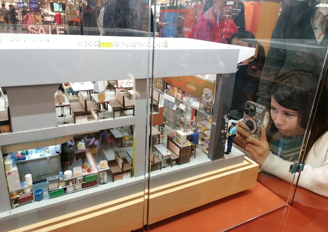 觀眾在拍攝民生微型雕塑