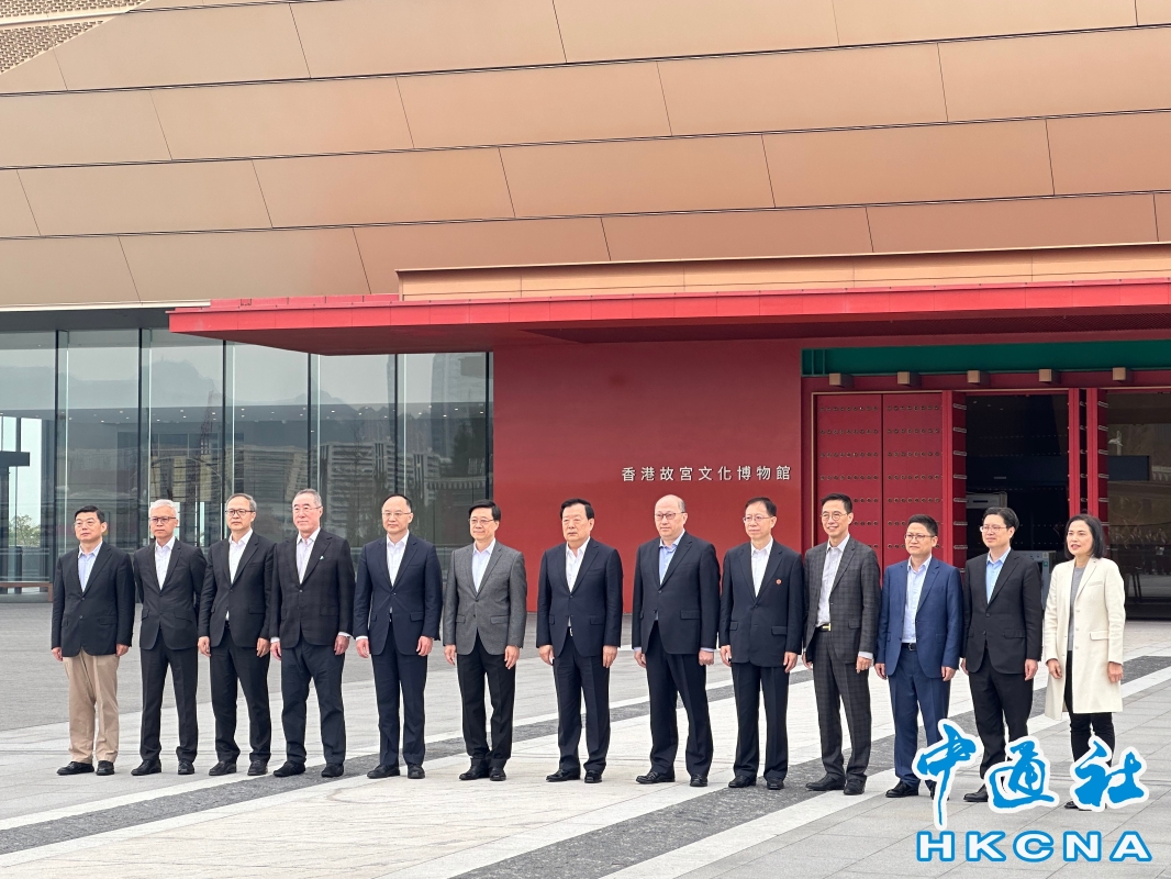 早上,夏寶龍由特區行政長官李家超、特區政府文化體育及旅遊局局長楊潤雄和西九文化區管理局董事局主席唐英年陪同到位於西九文化區的香港故宮文化博物館,考察香港的文化藝術發展和推廣及弘揚中華文化的工作。