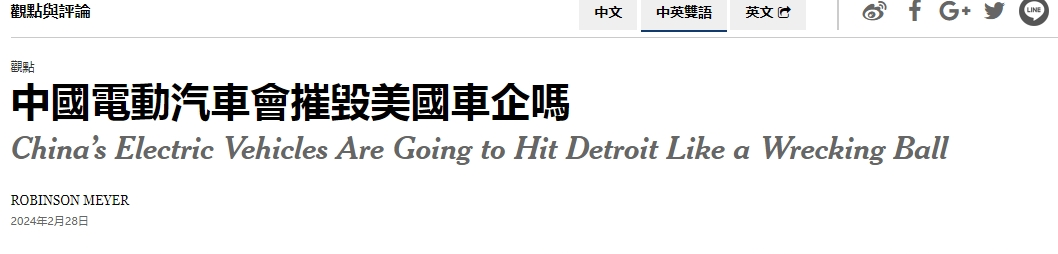 中國車企讓美國感到壓力 美媒:我們應渴望與中國電動車企競爭香港新聞網2月29日電 “美國車企必須感受刀架在脖子上的寒意,被迫站起來面對(中國電動車企的)挑戰”,美國《紐約時報》昨天(28日)發文擔憂中國電動車會摧毀美國車企。