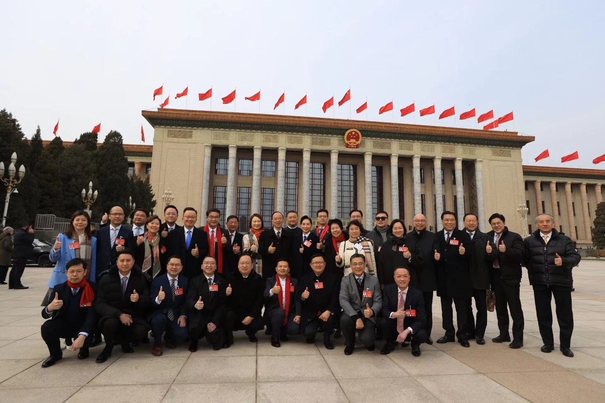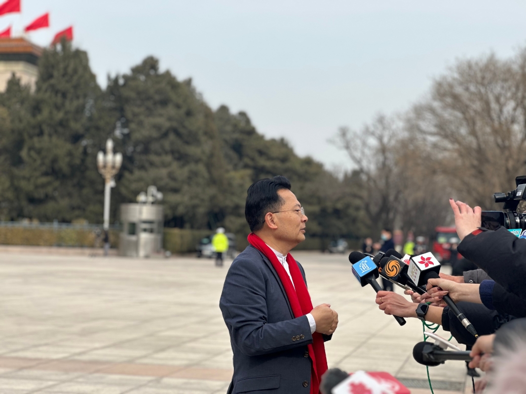 一小時後,全國各地代表團陸續抵達,參加預備會議。記者蜂擁而上對準各代表。港澳代表團抵達後主動走到鏡頭前,向等待多時的記者朋友問好並簡單介紹今年關注的兩會議題。