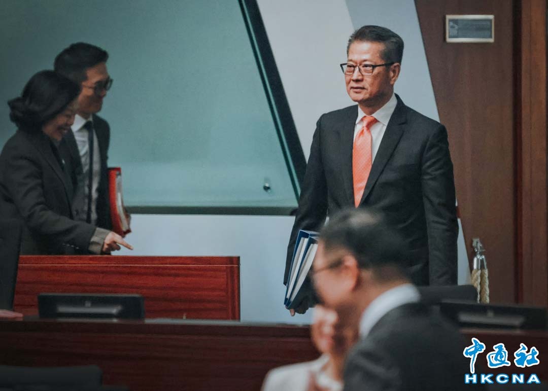 2月28日,香港特區財政司司長陳茂波在立法會發表新一份財政預算案。(香港中通社記者謝光磊攝)