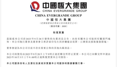 中國恒大收到聯交所復牌指引分享到: