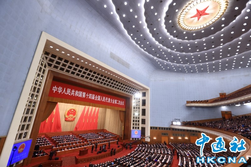 3月8日,十四屆全國人大二次會議在北京人民大會堂舉行第二次全體會議。(香港中通社記者 許其皓攝) 香港中通社圖片 在今後一年任務部分,報告指出,加強憲法實施和監督。維護憲法和基本法確定的特別行政區憲制秩序和法治秩序,落實特別行政區維護國家安全的法律制度和執行機制。 總結過去一年的工作,報告指出,加強經濟領域立法。作出關於延長授權國務院在粵港澳大灣區開展港澳律師內地執業試點工作期限的決定、關於授權澳門特別行政區對廣東省珠海市拱北口岸東南側相關陸地和海域實施管轄的決定,推動香港、澳門更好融入國家發展大局。(完) 【編輯:丘志彬】
