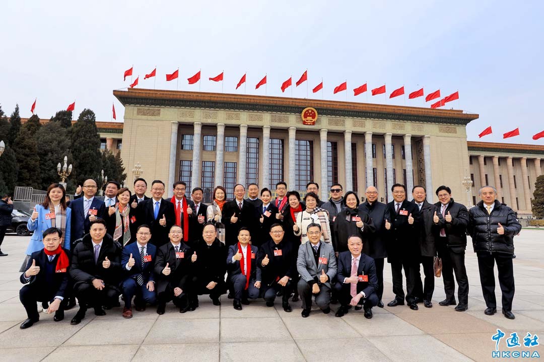 3月4日,十四屆全國人大二次會議在北京人民大會堂舉行預備會議。圖為港區全國人大代表合影。(香港中通社記者 許其皓攝)