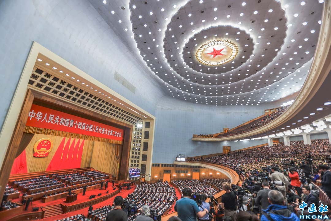 3月5日,十四屆全國人大二次會議在北京人民大會堂開幕。(香港中通社記者 許其皓攝)