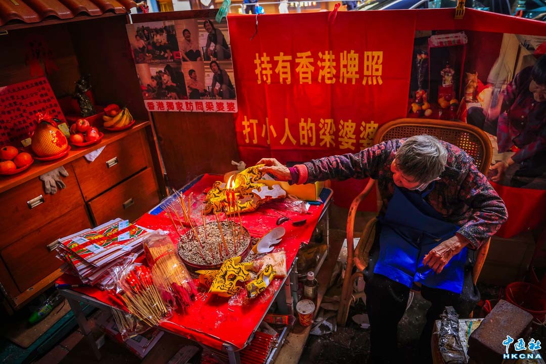 3月5日,是二十四節氣中的“驚蟄”,香港銅鑼灣鵝頸橋下一如既往的熱鬧,來打小人的市民排起了長隊,擊打聲此起彼伏,打小人攤子前擺放著各路神像,神像前有祭拜的燭火與水果供品。“驚蟄”代表天氣回暖,雨水增加,萬物被春雷乍動而驚醒,也喚醒了千千萬萬的蛇蟲鼠蟻等害蟲,相傳這一天拜祭“百獸之王”白虎,便能夠鎮壓害蟲及驅除百邪千害,廣東、香港一帶則慢慢演變成在驚蟄“祭白虎”及“打小人”。(香港中通社記者 曹文毓攝)