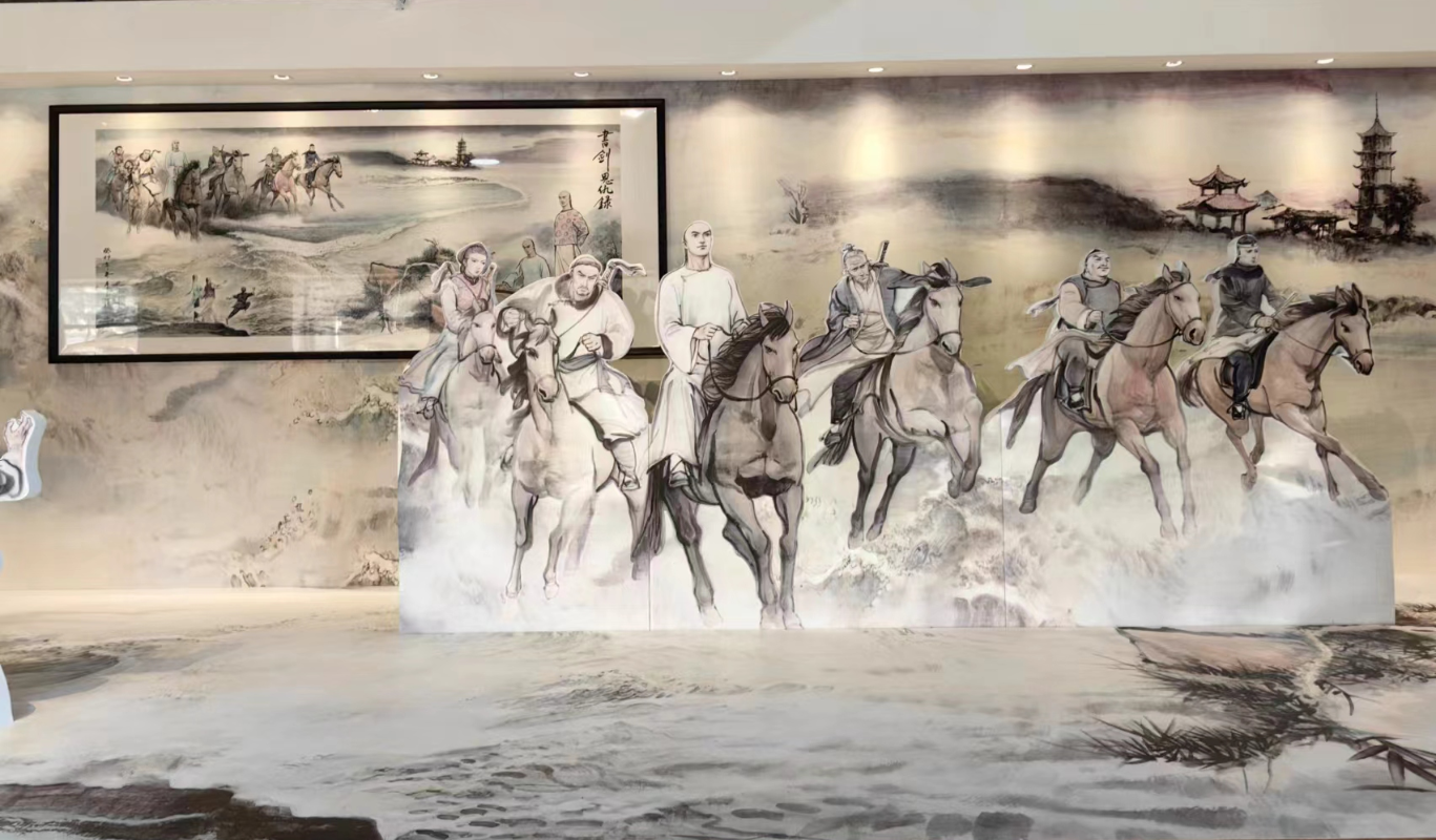 李志清是金庸“御用畫家”,將金庸小說裡快意恩仇的武俠世界以繪畫的形式再現。 今年適逢金庸百年誕辰,李志清應金庸故里浙江海寧舉行紀念大展的主辦方邀請,專門為展覽繪製金庸首部作品《書劍恩仇錄》主題畫《海寧觀潮圖》,畫中再現了陳家洛與乾隆皇帝在錢塘江畔撫琴觀潮的場景。剛從海寧回港的李志清接受香港中通社、香港新聞網專訪時表示,選擇《海寧觀潮圖》作為主題,“呈現的正是金庸的創作起點和家鄉情結。”