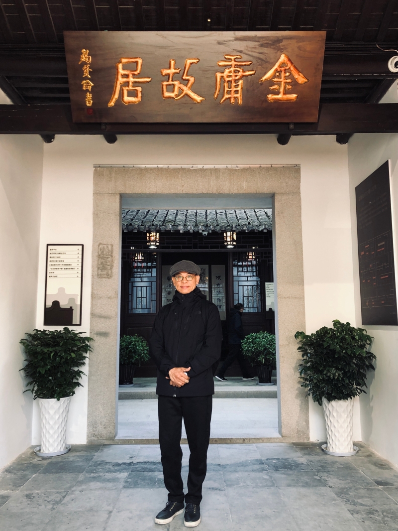 李志清於金庸故居前留影。(受訪者供圖) 金庸《書劍恩仇錄》是一部充滿鄉愁的作品,不但主角和故事原型都來自海寧,小說中還細緻描寫了海寧鹽官的安瀾園、海神廟和聞名天下的錢塘。從某種意義上來說,海寧是金庸筆下武俠江湖的源頭。金庸如同一位少年離家的武俠宗師,獨步“江湖”,然而,山高水長,心裡懷想的還是那個故鄉。在金庸汪洋恣肆、才情縱橫的武俠叙述中,無不流露出濃濃的故鄉情結。家鄉的煙雨,一草一木、一景一物、一事一人都被他寫進“武俠江湖”。 李志清少年時跟許多讀者一樣,無數個夜晚在被窩裡追讀金庸小說,金庸是他心中一個神聖的存在。李志清追憶他和金庸的相識相知,“90年代中,日本德間書店為金庸小說監修的岡崎由美邀請我畫小說封面及插圖,她到港相約金庸見面,我也成為座上客,這是我首次與金庸見面。”李志清憶述,初見金庸覺得他彬彬有禮,像是一位認識了很久的長者,“對我就如他之後常常說的‘自己人’一樣。”