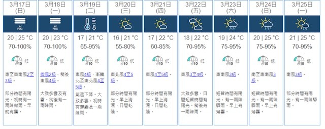 香港新聞網3月17日電 香港天文台最新預測,隨著現時影響廣東沿岸的偏東氣流,逐漸被潮濕的海洋氣流取代,預料今天(17日)轉吹東南風,香港再次迎來“回南天”,一連兩天相對濕度高達100%。根據分區預測顯示,17日(周日)上午香港11區相對濕度達90%以上。