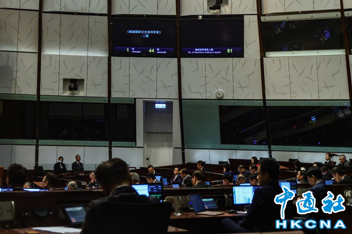 香港新聞網3月19日電 香港特區《維護國家安全條例草案》完成立法會法案委員會審議階段後,立法會今日上午9時加開會議,恢復二讀辯論、全體委員會審議及三讀《維護國家安全條例草案》。