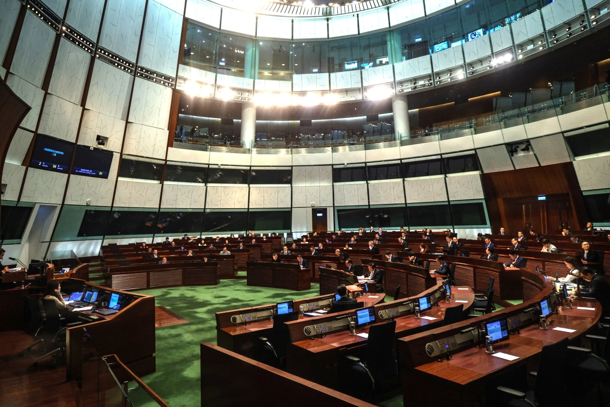 香港新聞網3月19日電(記者 徐嘉儀)胸前別著國旗和區旗襟章,立法會議員昂首闊步走向會議廳;調整麥克風發言,聚精會神記下重點······19日,香港立法會大會加開會議,《維護國家安全條例草案》恢復二讀辯論、全體委員會審議及最後三讀,等待近27年的立法工作即將完成。