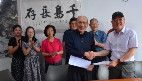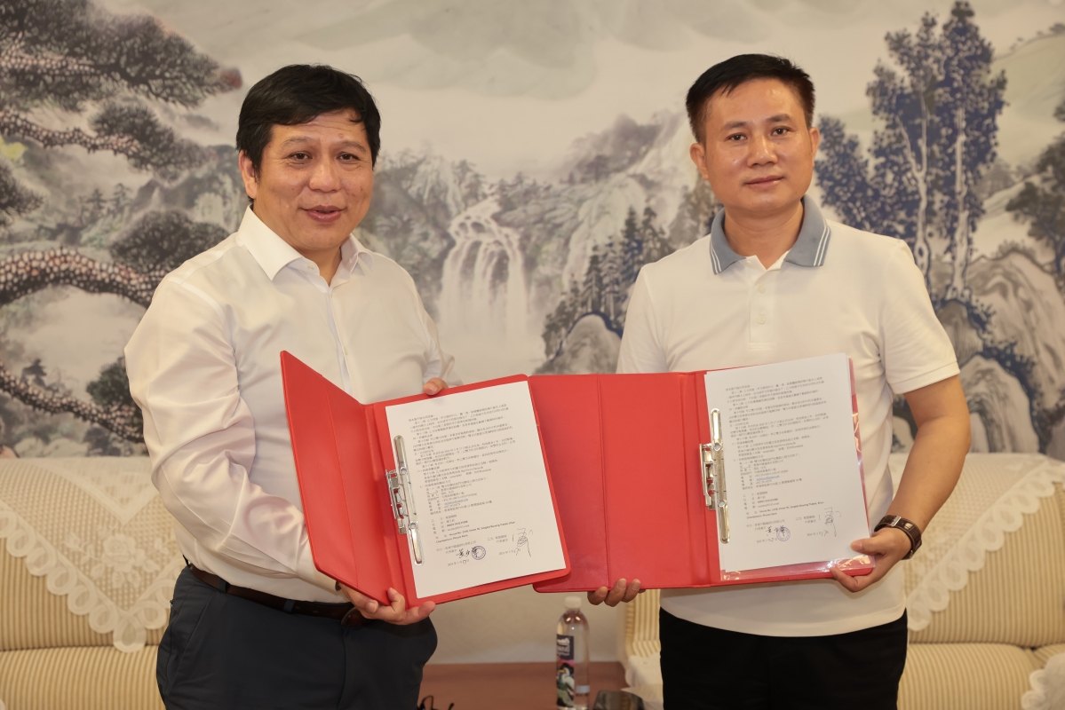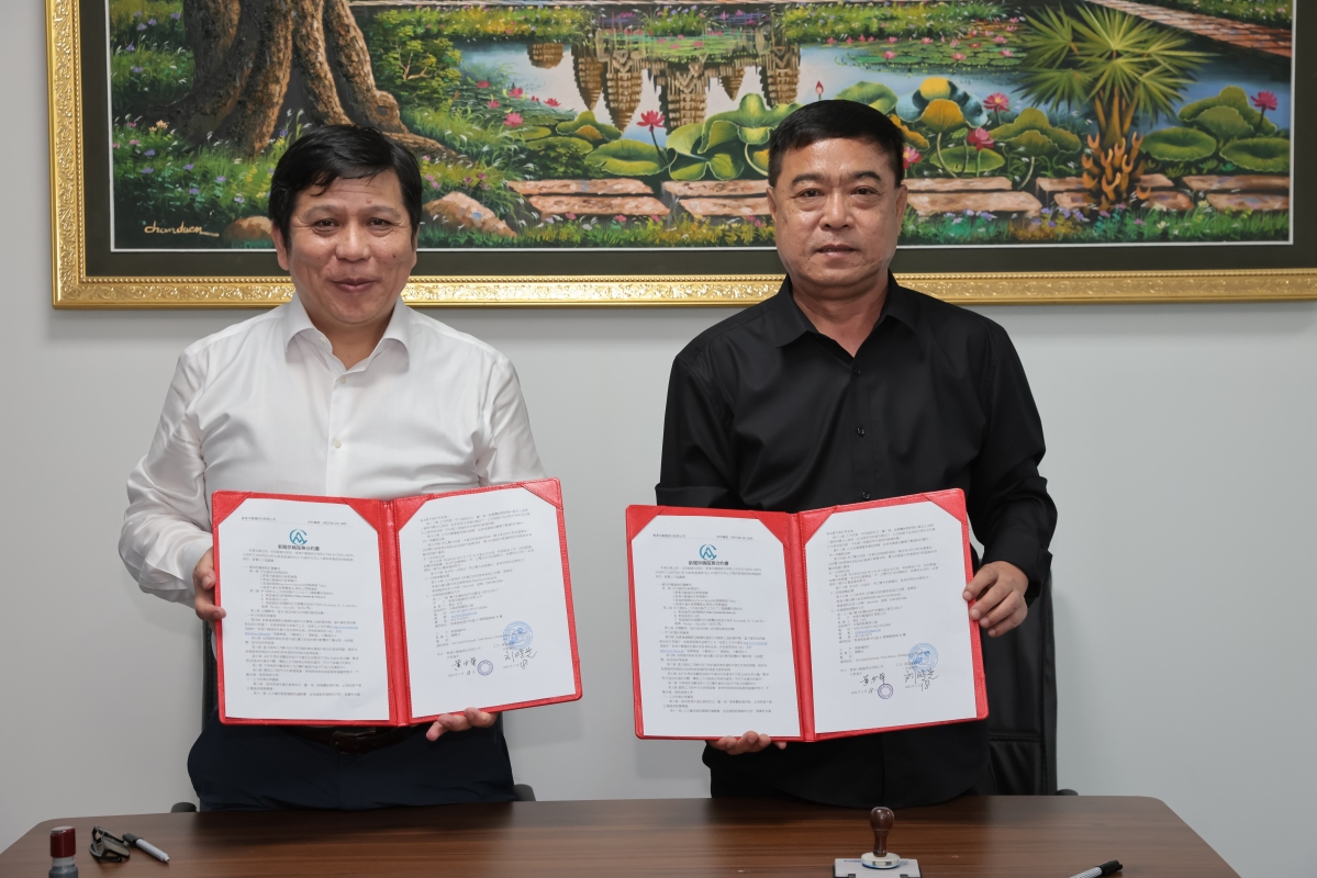 圖為香港中通社與東盟頭條簽署供稿服務合約,東盟頭條簽約代表為東盟頭條執行社長潘干武(右)。