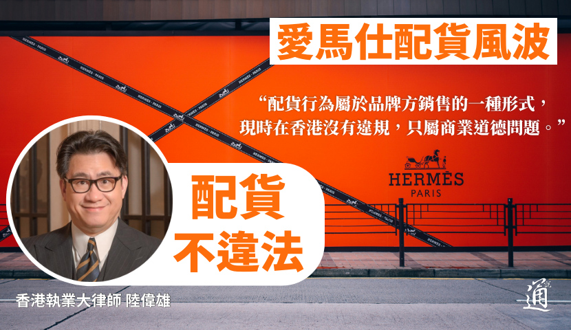 香港執業大律師陸偉雄稱,“配貨”行為在香港不屬於違法行為。(香港新聞網製圖) 對此,香港執業大律師陸偉雄向香港中通社、香港新聞網表示,“一般來說,市場上所有買賣都是自由達成。簡單而言,法律沒有規管這些(配貨)條款,當然其中的條款絕不能淩駕於法律之上。”陸偉雄指,就目前而言,“配貨”行為屬於品牌方銷售的一種形式,現時在香港沒有違規。“這種方式市民大眾是否接受,則另當別論,這個屬於商業道德的問題。”因此除了商業道德,現時在法律層面,很難界定愛馬仕等奢侈品牌需要“配貨”才能買到指定商品的消費規則屬違法。 雖然愛馬仕方面曾公開回應“從未有這樣的規定,也沒有配貨的說法”。因為“配貨”不存在白紙黑字合同,若遇商家搭售行為,消費者想要舉證維權是否較為困難?陸偉雄表示,很多方法可以舉證,倘若購物時有同行者,陪同人士可做人證;有些消費者還會將錄音、拍攝整個交易過程,日後即使沒有白紙黑字的文件支撐,有人證或是錄音、錄影都可以作為一定的依據進行維權。 (完) 【編輯:黃璇】