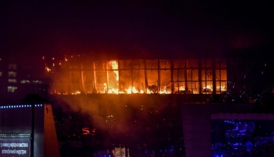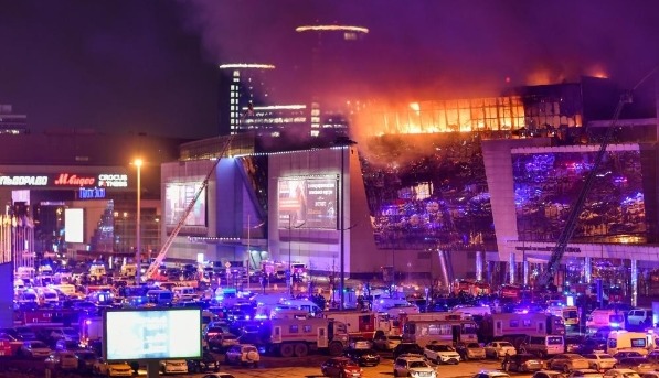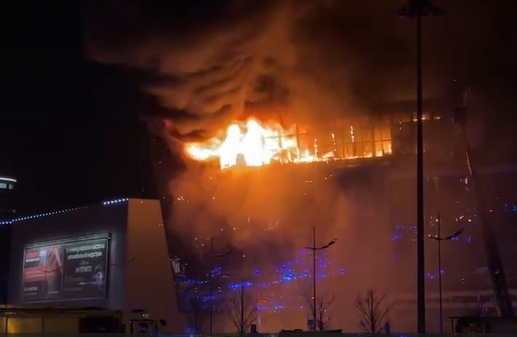 音樂廳發生恐怖襲擊後引發火災。受訪者供圖 最後,在大環路待了將近三個小時後,陳一鳴才成功逃離現場,“從橋上離開的時候已經將近是夜裡11點了。” 在陳一鳴離開現場時拍攝的視頻裡,音樂廳附近依然火光衝天,煙塵滾滾,警笛不斷。 據央視新聞消息,當地時間3月24日,俄羅斯莫斯科州衛生部門更新了音樂廳恐襲事件受傷人員名單,名單顯示共有154人在襲擊中受傷。 早前,俄總統普京就俄音樂廳恐怖襲擊事件向國民發表電視講話。講話中,普京宣布將3月24日定為全國哀悼日。 對於此次事件,普京表示,這是“血腥野蠻的恐怖襲擊”,俄羅斯將查明和懲罰每個為發動此次恐襲做準備的人,將采取一切措施查明莫斯科州音樂廳恐襲事件的所有細節。普京表示,等待恐怖分子的是報複,他們沒有未來。普京強調,俄羅斯將查明真相併將所有幕後黑手繩之以法。他還表示,莫斯科和其他地區將采取補充性反恐措施。(完) 【編輯:紀東】
