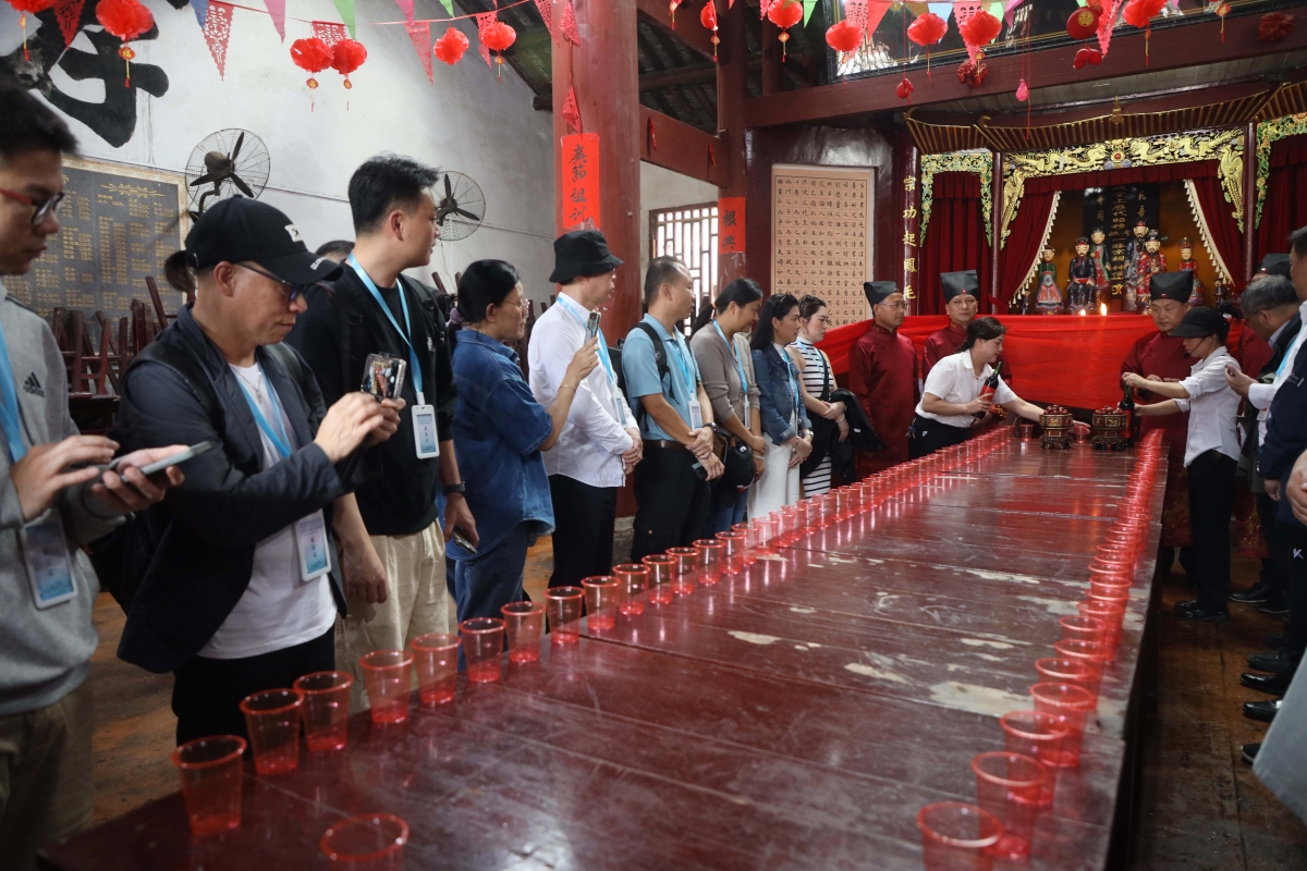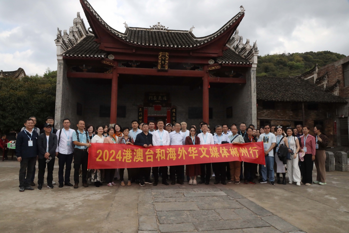 45家海外及港澳台華文媒體來到湖南郴州在板樑古村參觀。