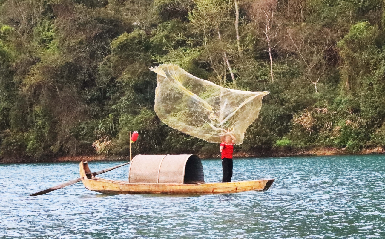 霧漫東江湖,漁夫撒網場景也是眾多攝影家來此拍攝“打卡”的地方。
