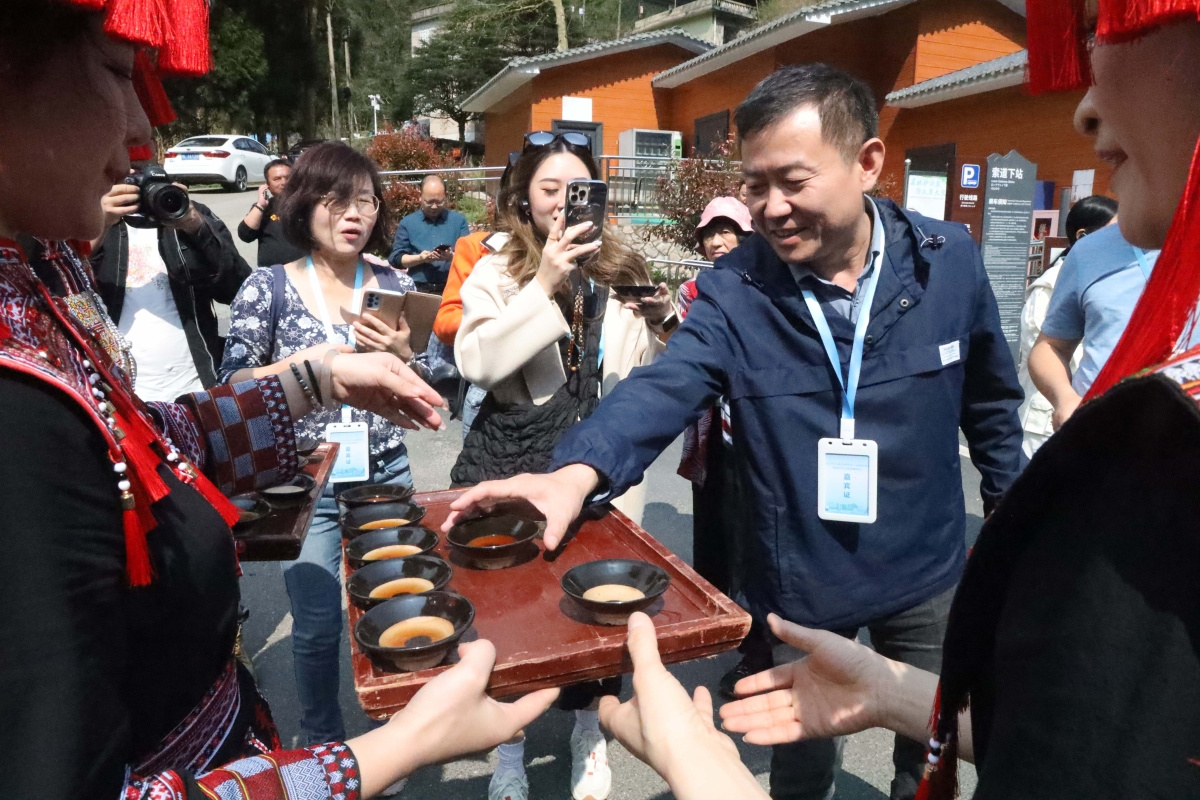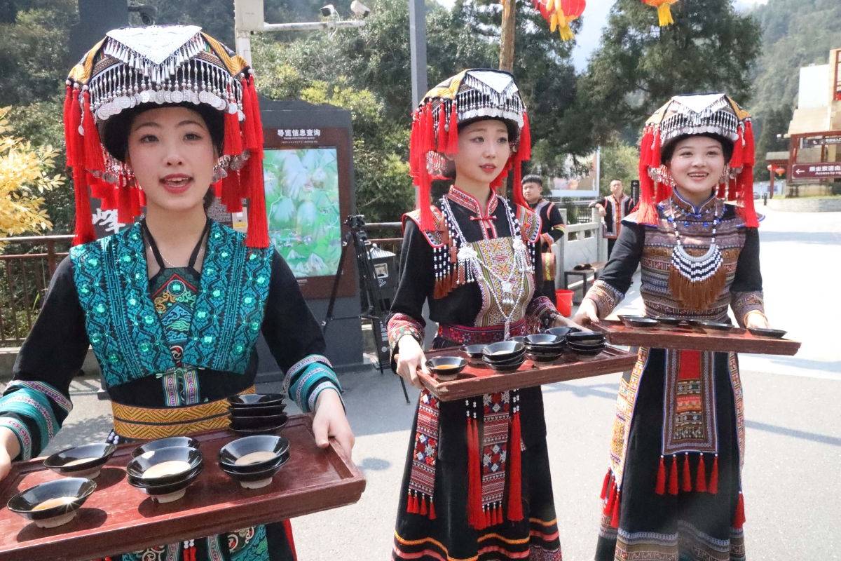 莽山景區的瑤族迎賓酒。