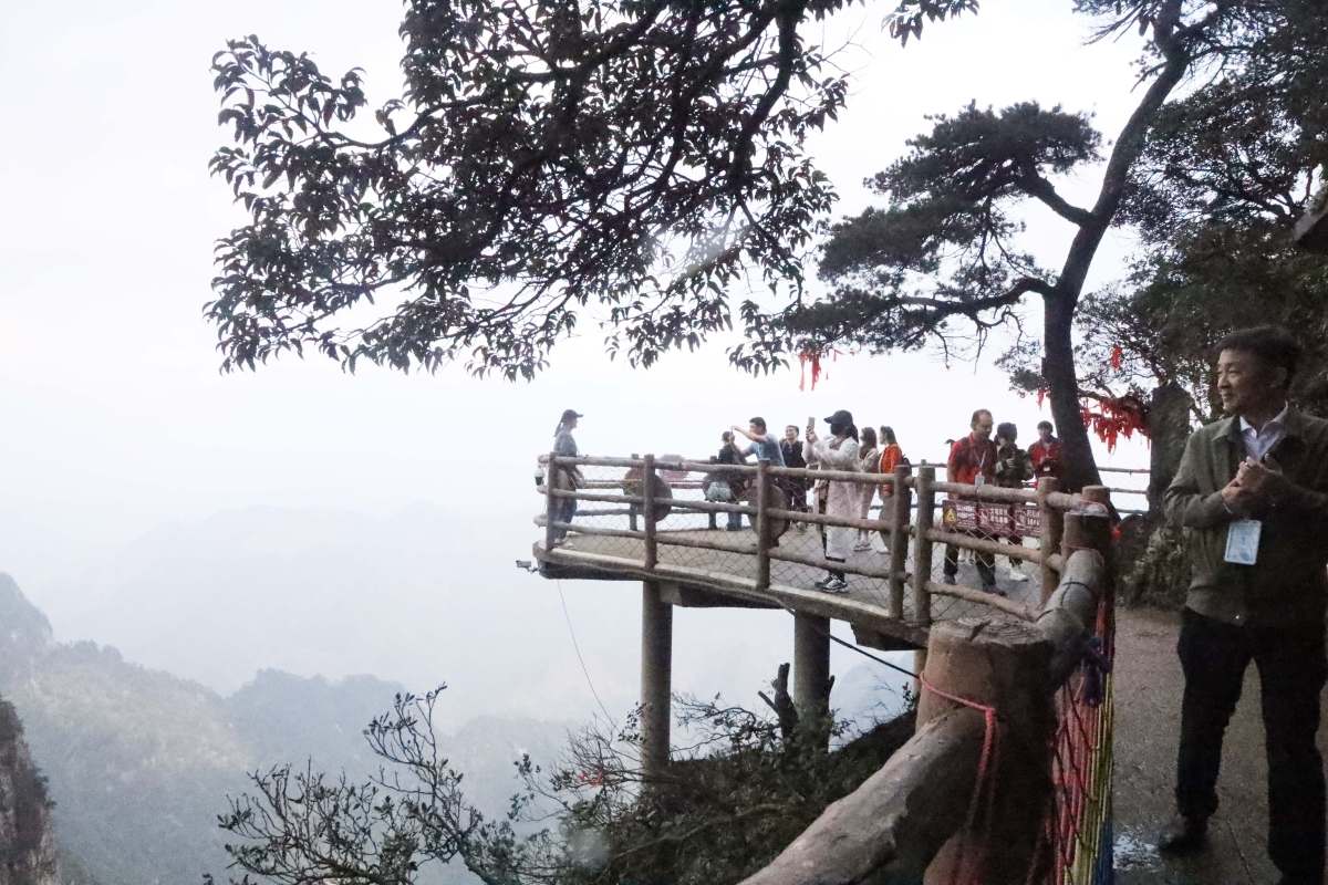 莽山五指峰景區,在海拔1400米至1600米處架設索道、扶梯、自助“爬樓機”、懸崖觀光垂直電梯等設施,打造了一條無障礙旅遊通道,讓行動不便人士全程不用下輪椅,就可登頂莽山五指峰。
