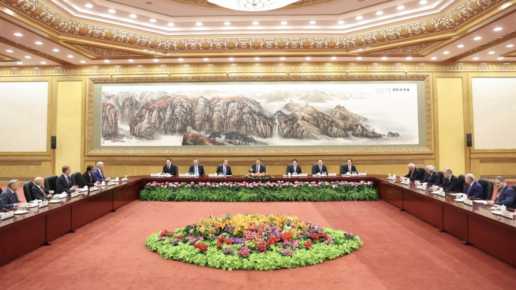 香港中通社3月27日電(記者 黎金良)據中國官媒消息,中國國家主席習近平27日在北京人民大會堂集體會見美國工商界和戰略學術界代表。分析認為,此舉凸顯出中國堅定擴大高水平對外開放,重視兩國各界人士多來往。 此前,中國商務部部長王文濤也在北京密集會見了博通、高通、美光科技、SK海力士等全球半導體巨頭的負責人,表示歡迎他們繼續投資中國,加強與中國的合作。 這次會見的規格更高,參與的美方代表來頭不少,包括:美中關係全國委員會董事會主席格林伯格、黑石集團董事長兼首席執行官蘇世民、高通公司總裁兼首席執行官安蒙、哈佛大學肯尼迪政府學院創始院長艾利森、美中貿易全國委員會會長艾倫等。