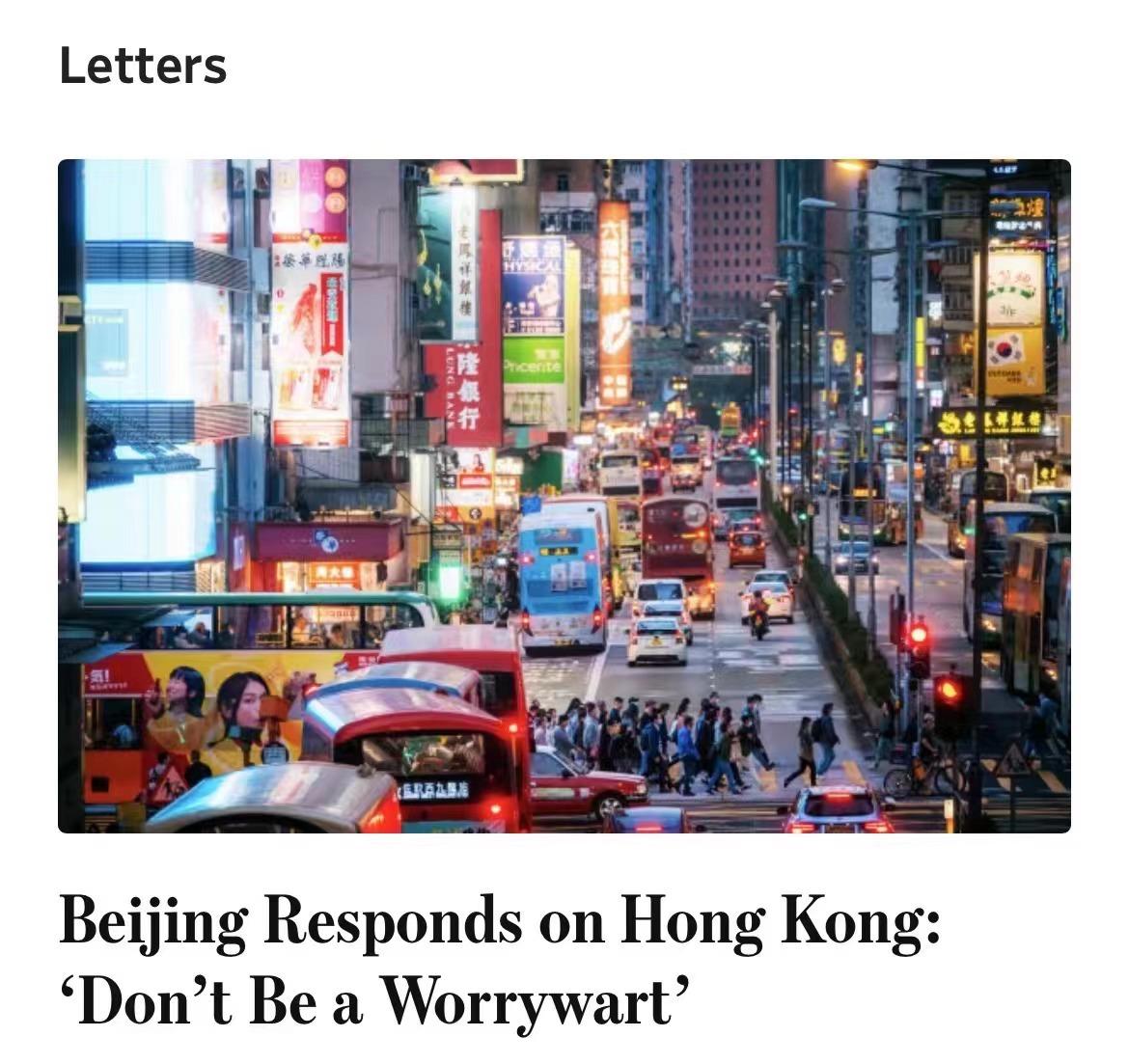 外交部駐港公署在《華爾街日報》發文批駁涉港謬論