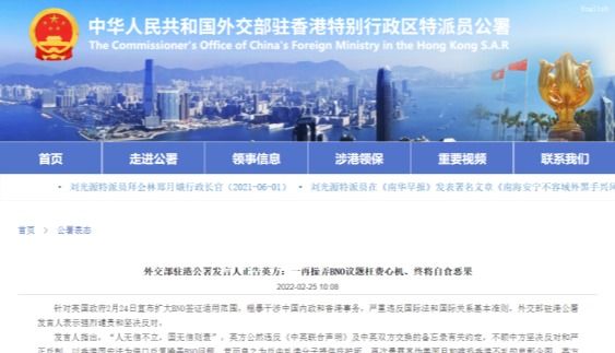 香港新聞網3月30日電 針對美國國務院發佈所謂“2024年香港政策法報告”和美國務卿布林肯發表的相關聲明,外交部駐港公署發言人表示,有關言行顛倒黑白、倒打一耙,污名化香港國安法、特區選舉制度和香港《維護國家安全條例》,詆毀香港法治、民主、自由、人權狀況,甚至揚言制裁特區官員,粗暴干預香港事務和中國內政,嚴重踐踏國際法原則和國際關係基本準則,對此表示堅決反對和強烈譴責。