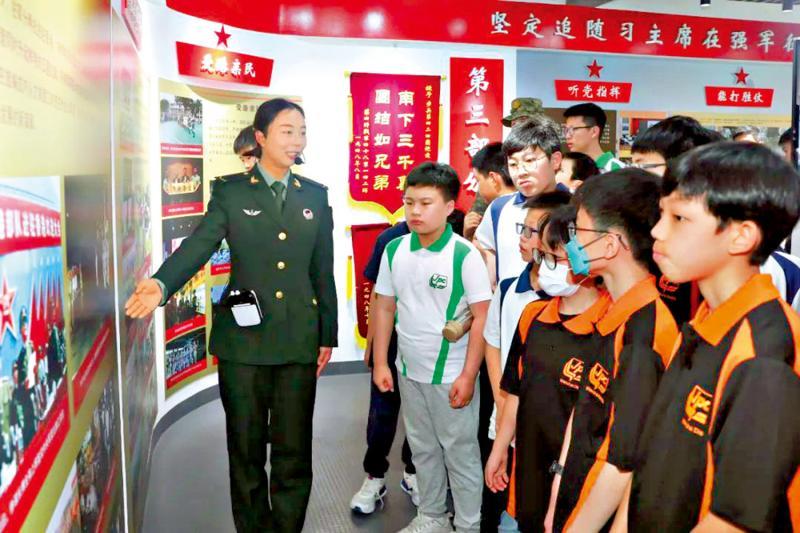 圖:香港青少年們認真聆聽講解。 9時許,軍事體驗營活動在隆重的升國旗儀式中拉開帷幕。“起來,起來……”隨著軍樂隊奏響國歌,現場香港青少年與駐軍官兵一起莊嚴肅立,注視著五星紅旗冉冉升起。隨後,他們分組參加隊列訓練,在一令一動中體驗軍旅生活、展現青春風采。 走進“黃土嶺功臣炮連”榮譽室,香港青少年在一面面戰旗、一塊塊獎牌前駐足觀看,駐軍官兵堅決聽黨指揮、矢志奮鬥強軍的火熱實踐,讓他們倍感震撼。在“香港大學生軍事生活體驗營”和“香港青少年軍事夏令營”活動中心,映入眼簾的照片墻展現了駐軍官兵與香港市民攜手同心一家親的感人場景。他們還近距離觀摩武器裝備,了解官兵學習工作生活,與駐軍官兵進行熱烈互動交流。 組織香港青少年愛國主義和國防教育軍事體驗營,是駐香港部隊適應香港從由亂到治走向由治及興新階段,面向香港青少年開展愛國主義和國防教育的創新舉措,對於充分展示駐軍威武文明良好形象,充分激發香港青少年愛國愛港熱情,打牢服務香港、報效國家的思想根基,具有重要意義。(完) 【編輯:纪东】