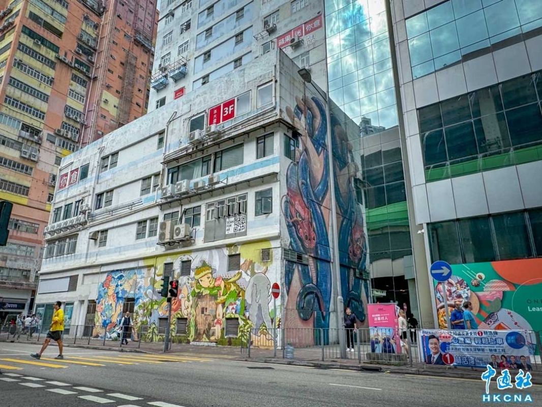 香港新聞網4月1日電(記者 徐文峰) 工廠大廈林立的香港黃竹坑,給人的印象是勞力與汗味結合的地方,但沒想到一座座老舊的大廈外牆,卻畫著各式街頭塗鴉,粗獷中透著細膩,散發著迷人的藝術氣息,是文青打卡的好去處。