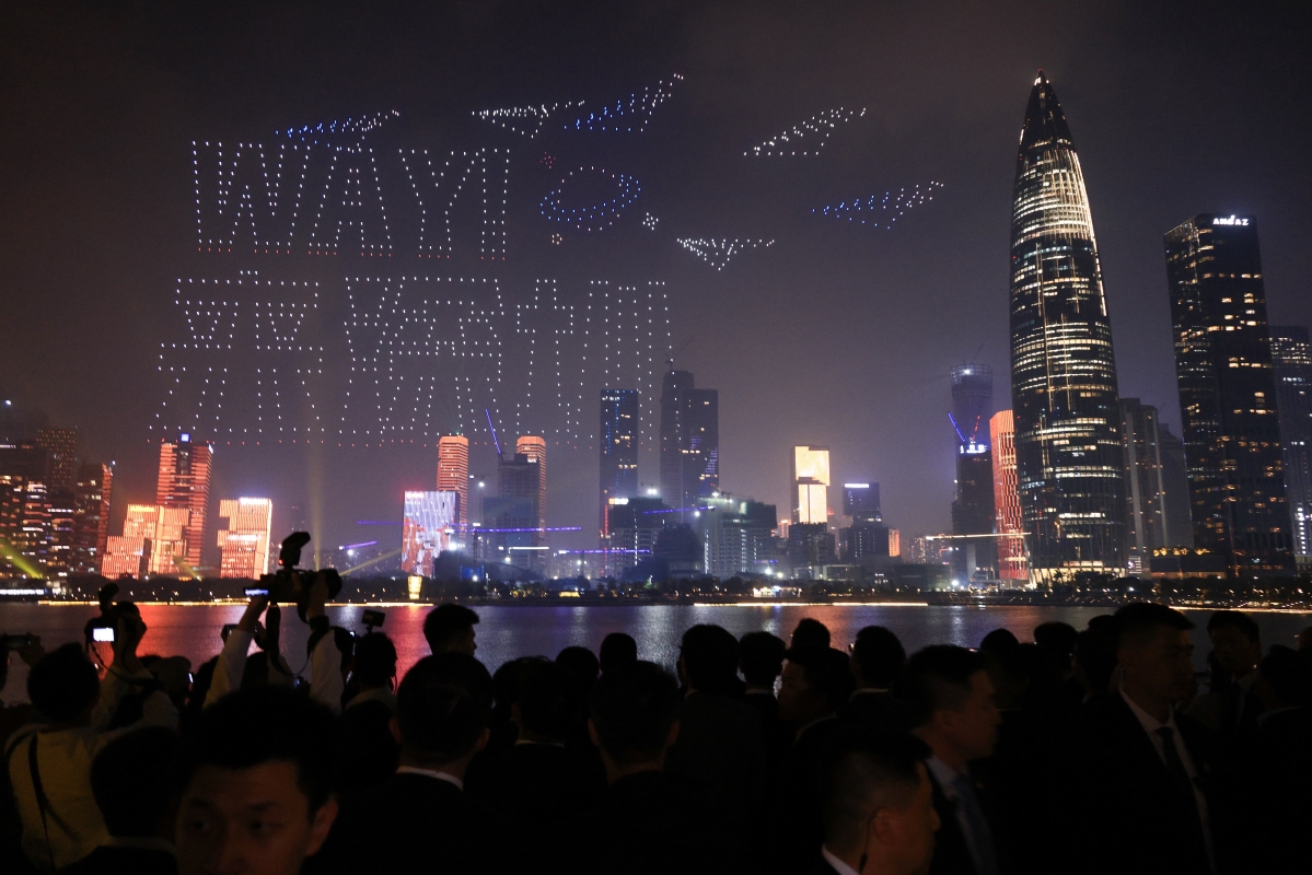 香港中通社記者 許其皓 攝 4月1日,台灣當局前領導人馬英九搭乘航班抵達深圳,一下飛機就前往大疆公司、騰訊公司參訪。 大疆公司由出生於台灣的總裁羅振華接待,馬英九親自體驗大疆產品,並感到十分新奇;騰訊公司由創辦人馬化騰陪同馬英九參觀,看到最低售價約3000元人民幣的騰訊助聽器時,馬英九不由發出驚嘆“這麼便宜”。