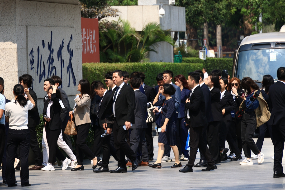 香港中通社記者 許其皓 攝 香港中通社視頻記者 陳爍 孫晉欣 4月2日一早,馬英九一行前往比亞迪公司參觀,中共中央台辦、國務院台辦主任宋濤陪同前行。參觀過程中,馬英九親自上車感受比亞迪產品,也進一步了解大陸新能源汽車產業政策。當馬英九問及比亞迪技術領先全球多少年時,宋濤這樣回覆:“要有信心,(別人)永遠追不上”。 與馬英九同行的台灣“大九學堂”青年學生也對三場高科技企業參訪行程展現出濃厚興趣。平時就有接觸大疆公司、騰訊公司產品,此番能夠擁有親身參觀的機會讓他們更加感到興奮,聆聽講解時不少學生做起筆記,互相之間也時有低聲討論。 根據馬英九基金會此前公佈,馬英九於4月1日至11日率團訪問大陸,期間將前往廣東、陝西、北京等地,參訪中華文化歷史景點與企業,並出席祭黃帝陵大典。在廣東的3天行程中,高科技企業參訪佔有一定比重,這背後有何意義?