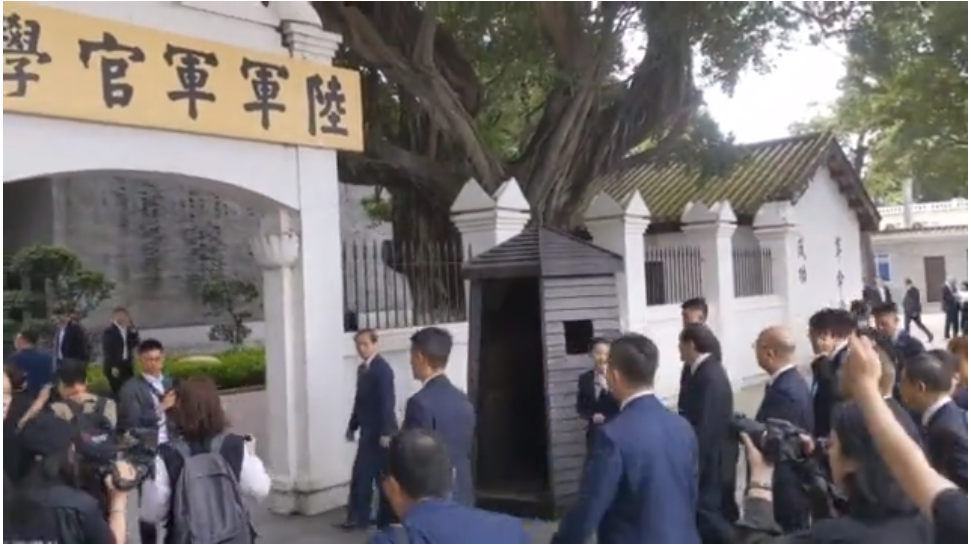 馬英九參觀黃埔軍校,認真聆聽解說員講解。 (“中視新聞”直播畫面) 據介紹,1924年6月16日,中國國民黨陸軍軍官學校在廣州市東郊的黃埔區長洲島正式創立,通稱“黃埔軍校”或“黃埔官校”。該校為孫中山先生指示籌辦,與蘇聯合作,由孫中山兼任軍校總理,廖仲愷任校黨代表,蔣介石任首任校長。 黃埔軍校建立以來,以孫中山現成的“創造革命軍隊,來挽救中國的危亡”為宗旨;以“親愛精誠”為校訓來培養軍事與政治人才。 在國共合作的大時代背景下,許多中國共產黨員,曾經先後在該校擔任政治工作和其他工作,以革命精神為當時的革命軍隊培養了大批骨幹,其中包括不少共產黨員和共產主義青年團。 今年是黃埔軍校建校100周年,除了台灣高雄的陸軍官校將會舉辦慶典外,廣州的黃埔軍校舊址里面也已經擺上百年慶祝的裝置。(完) 【編輯:施鑫岳】