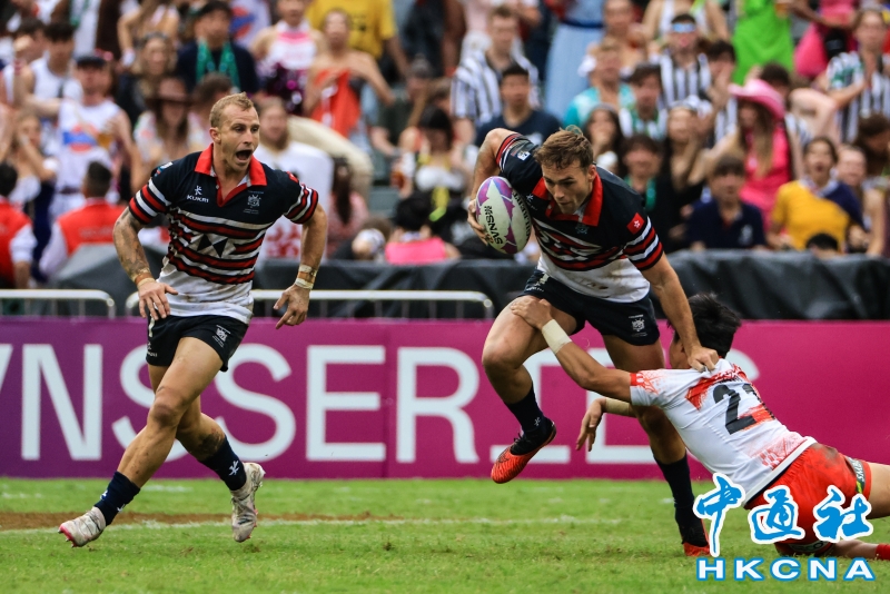 4月6日,香港國際七人欖球賽第二個比賽日,在銀劍賽男子組的比賽中,中國香港隊(藍)以14:33不敵日本隊(白)。(香港中通社記者 許其皓攝) 香港中通社圖片 香港旅遊發展局今年還特別邀請了《哈利·波特》系列電影的演員奧利弗·菲利普斯和詹姆斯·菲利普斯兩兄弟觀看賽事,並安排了香港欖球隊隊員作為向導,帶領他們體驗香港的山海美景和美食。兩兄弟還通過社交媒體分享他們的香港之旅,向粉絲們展示了香港的美麗風光和精彩體驗。 據悉,在賽事第二日,中國香港女隊在Melrose銀劍賽中以28比10大勝泰國隊,憑借兩場全勝的戰績,成功晉級7日的決賽。(完) 【編輯:纪东】