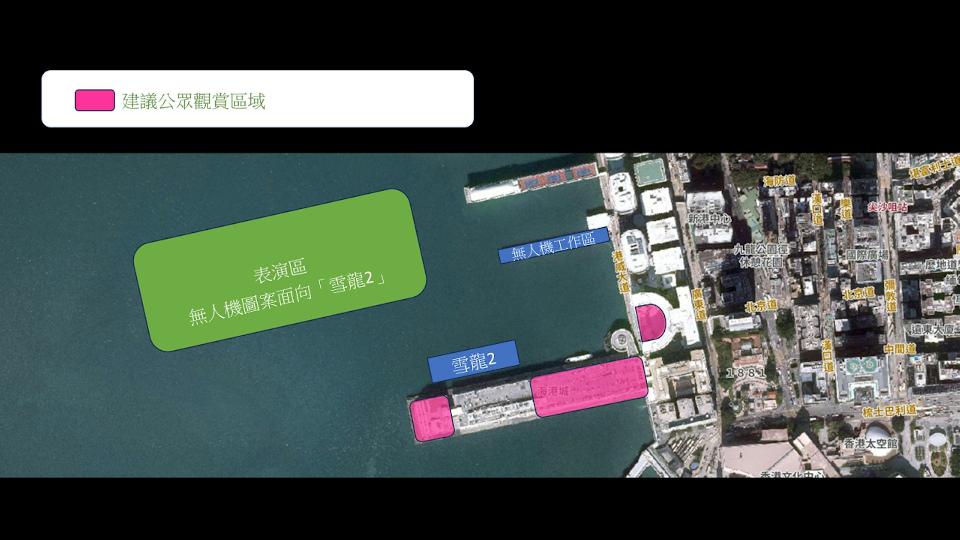 大會指,較佳觀賞位置為海運大廈停車場天台,巿民亦可在中環對岸、西九文化區等地以較廣闊視野、遠距離觀賞。表演共有500架無人機參與,將組成“雪龍2”號3D圖案,極地生物如企鵝、鯨魚、海獅等圖案,市民可於海運碼頭沿岸一帶觀賞。 大會提醒,若在天星碼頭方向觀賞,無人機表演有可能受到遮擋。 “雪龍2”號無人機表演 日期:4月10日 時間:晚上8時 地點:海運碼頭上空 參與方式:現場觀賞或無綫新聞台直播 (完) 【編輯:紀東】