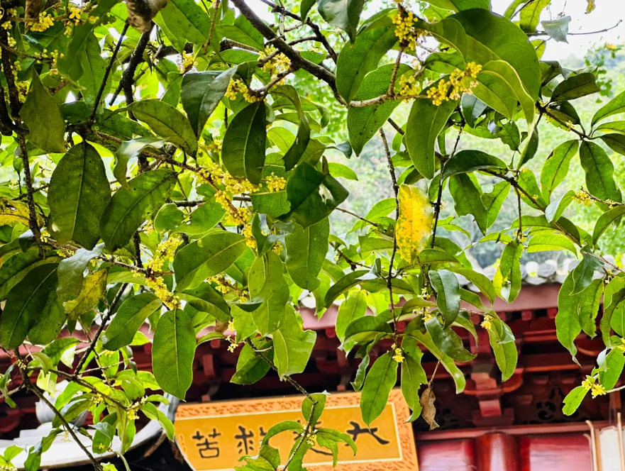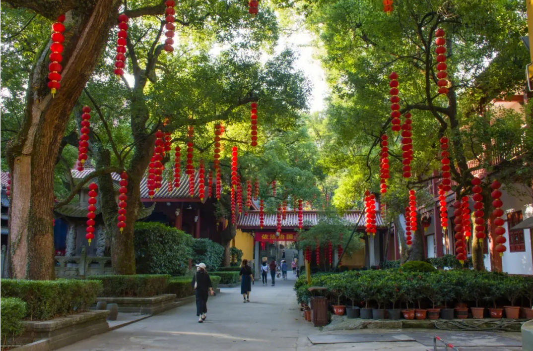 神廟里韜光寺里的桂花開得很好。 第三站:靈隱寺 去杭州不能不到靈隱寺,這里始建於東晉鹹和元年(公元326年),至今已有約一千七百年的歷史,是杭州最早的名刹。靈隱寺地處杭州西湖以西,背靠北高峰,面朝飛來峰,兩峰挾峙,林木聳秀,深山古寺,雲煙萬狀。 從財神廟出來下山步行超輕鬆,到山下就要檢飛來峰景區的票,飛來峰景區門票可以提前在“杭州西湖西溪景區”公眾號購票,到上下直接刷身份證過去,再走過一段路在永福寺門口有一片超適合拍照的樹林,拍完就進靈隱寺拜拜,進門左手邊就有賣網紅十八籽手串,右手邊有家素齋,拜完可以去吃碗素面。