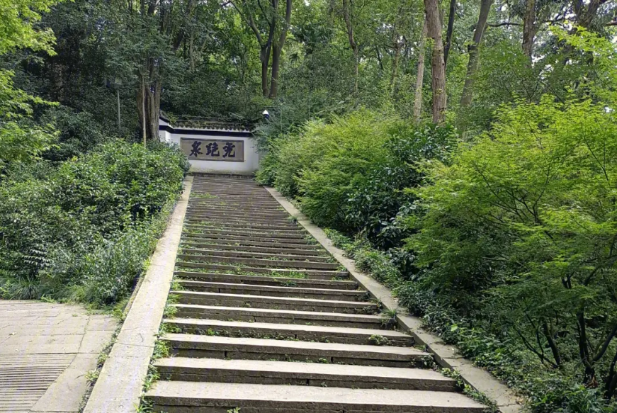靈隱寺。 第四站:虎跑泉 其實虎跑泉是“虎跑景區”一部分,雖然在規模上遠不如“靈隱景區”,但出名在於這里的水質特別好,虎跑的泉水迴旋在樹林山石之間,沒有漣漪,沒有波濤,明明亮亮,平平靜靜,坦坦蕩蕩地流著,在山中時隱時現,雖然是弱小的細流,卻依然義無反顧。正是這水之韌性,賦予了虎跑清新,質樸的自然美。茶坊一直有一種說法,龍井茶必須要用虎跑泉水泡了喝,才是難得的上佳茶品。 虎跑泉水色晶瑩透亮,口感甘冽而醇厚。明代中後期養生大師高濂曾經說:“西湖之泉以虎跑為最,西山之茶以龍井為佳。”估計這就是“龍茶虎水”號稱西湖雙絕的源頭。“虎跑泉蹤”圓洞門前粉白圍牆上寫著“天下第三泉”五個大字,傳說是中唐茶聖陸羽評的,又傳說是乾隆定的。