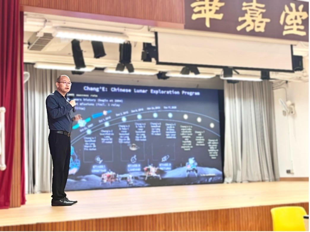 執行主席高博。主辦方供圖 作為本港迄今唯一進行月壤研究的科學家,香港大學錢煜奇博士就向同學們介紹了嫦娥五號帶回的月壤研究情況。香港理工大學陳龍博士曾參與嫦娥系列登月工程研究,今次他講解了國家月球探測工程及其科技。香港科技大學(廣州)車偉濤博士,就其從事的衛星研發和應用,講解了衛星如何幫助人類生活和城市發展、災害管理等。香港科技大學於宏宇教授,則介紹了人類航空航天的歷史與我國自上世紀70年代開始的太空探索歷史、成就及未來計劃。 四位嘉賓通過相關研究資料和視頻為學生們呈現了一堂別開生面的科普課,也普及了太空安全知識,有助培育學生的科學素養和國家安全意識。