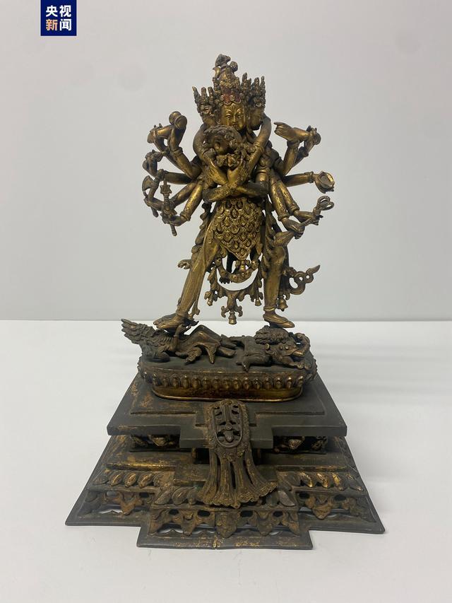 4月17日,在美國紐約中國駐紐約總領館,工作人員點交中國流失文物藝術品。新華社 經初步鑒定,專家判斷該批文物大部分為明清時期我國藏傳佛教文物,涉及佛塔、佛像、佛教飾物等類別,涵蓋銅、泥、象牙、木等材質,內容豐富,保存完整,具有重要的歷史、藝術和科學價值。