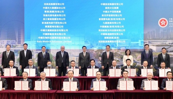 香港特區行政長官李家超在簽約儀式上表示,這是香港和深圳創科合作的里程碑,相信這些合作夥伴加盟港深創科園有助香港吸引更多人才和投資。(香港中通社記者 謝光磊 攝) 香港中通社圖片 港深創新及科技園位於香港新界落馬洲河套地區,計劃建設成重點創科研究合作基地,吸引港深兩地乃至全球頂尖企業。 李家超指出,港深創科園的香港園區位於新田科技城,佔地約300公頃,將成為香港迄今為止最大的科技創新中心。園區已經接近運營階段,兩座實驗室大樓和一座住宿大樓將於今年年底陸續完工。