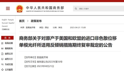 商務部:對原產於台灣地區的進口聚碳酸酯征收反傾銷稅香港新聞網4月20日電 據中國商務部網站消息,商務部19日發佈《關於原產於台灣地區的進口聚碳酸酯反傾銷調查最終裁定的公告》。公告顯示,調查機關最終認定,原產於台灣地區的進口聚碳酸酯存在傾銷,大陸聚碳酸酯產業受到實質損害,而且傾銷與實質損害之間存在因果關係。國務院關稅稅則委員會決定,自2024年4月20日起,對原產於台灣地區的進口聚碳酸酯征收反傾銷稅。