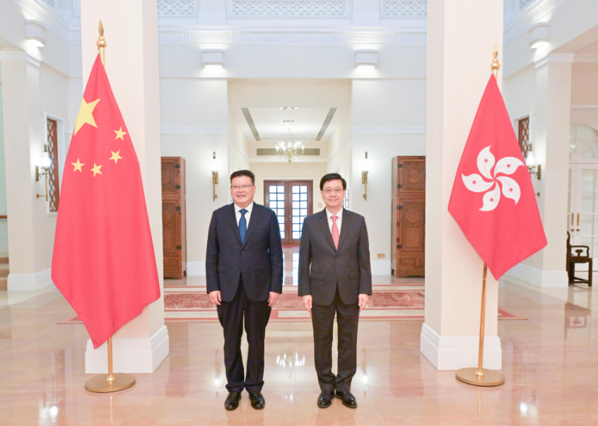 香港新聞網4月24日電 香港特區行政長官李家超24日在禮賓府與深圳市委書記孟凡利會面,就進一步加強港深合作和共同推動粵港澳大灣區高質量發展等議題交換意見。政務司副司長卓永興、政制及內地事務局局長曾國衞、創新科技及工業局局長孫東教授和行政長官辦公室主任葉文娟亦有出席。
