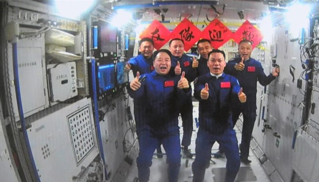按照任務計劃,神舟十八號航天員乘組從飛船返回艙進入軌道艙。北京時間2024年4月26日05時04分,在軌執行任務的神舟十七號航天員乘組順利打開“家門”,歡迎遠道而來的神舟十八號航天員乘組入駐“天宮”。隨後,兩個航天員乘組拍下“全家福”,共同向牽掛他們的全國人民報平安。 後續,兩個航天員乘組將在空間站進行在軌輪換。其間,6名航天員將共同在空間站工作生活約5天時間,完成各項既定工作。