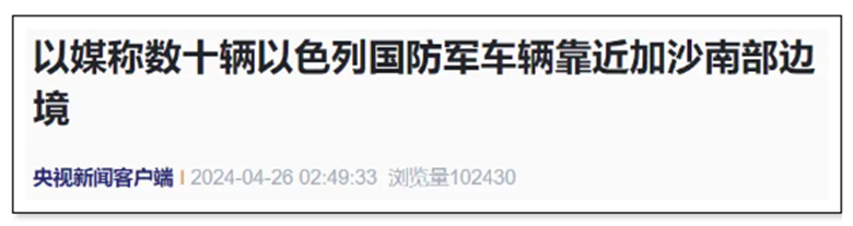 央視新聞報道截圖 據《以色列時報》當地時間4月25日報道,以色列軍隊在靠近加沙地帶南部的邊境部署了數十輛坦克和裝甲車。